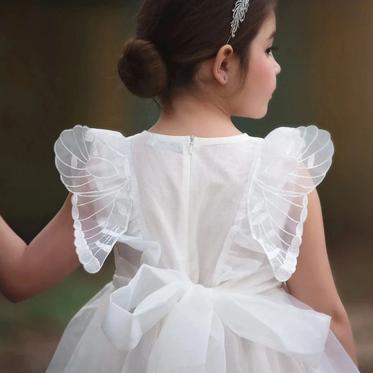Sweetness has just flown in and she’s wearing our Alice dress with butterfly wings! The perfect combination of pleating and ruffles, this poly organza dress also comes with whimsically placed butterfly wings and a big self tie bow in back. She will be the talk of the town in this sweet frock. 100% poly self, 100% soft cotton lining. Machine wash, hang dry.