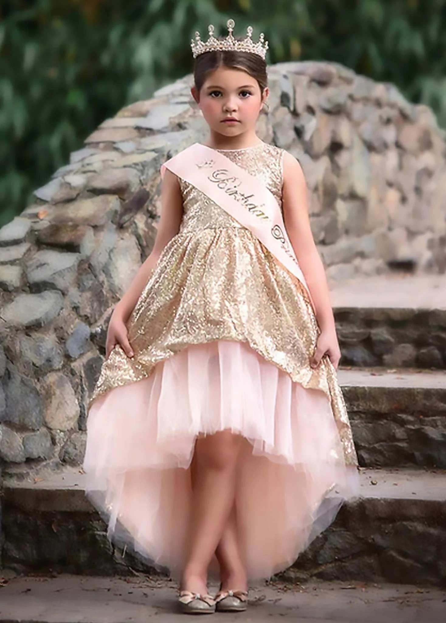 It’s HER day and she should shine! Made from the most popular birthday party colors, this birthday princess dress will have all eyes on her. The blush pink sequin bodice is pure perfection, perfectly trimmed with piping at the neckline and arms. The oh so twirly skirt will have your girl in a spin! This birthday girl dress is fully lined with soft cotton and made with our signature soft fabrications for the tactile sensitive child. The sash is completely removable and the dress can be worn over and over to her most special of occasions.