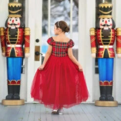 Ahhh the classic beauty of a Stewart tartan dress! She will have all eyes on her when she walks into the room wearing this ethereal gown. The traditional Christmas plaid bodice is graced with black velvet detailing and a hint of tulling. The poofy skirt is fit for a princess with all the twirl a girl could ask for. This gown is fully lined with soft cotton and back zips. Machine wash, hang dry.