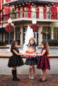 Our most perfect holiday dress yet, our take on a classic a-line cut features a fur collar and cap sleeves. The stunning damask fabric makes and just the right amount of poof in the skirt makes for a stunning entrance both coming and going.