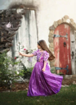 She will be the fairest in all the land in this darling princes dress. Full of details and whimsy, this is not your average costume. Incredible quality and a perfect keepsake for years to come. Don’t forget to add our tiara and our wand for just the right accessories for the princess! These are soft and never scratchy, we understand tactile sensitivity and always design using the softest materials, then we fully line the dresses with soft cotton. NO GLITTER is EVER used on any of our items. TIARA AND WAND ARE SOLD SEPARATELY. 100% poly, machine wash, hang dry. DON’T FORGET HER MATCHING DOLL DRESS OR THE MATCHING DOGGIE OUTFIT!