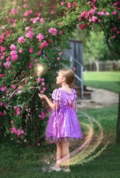 She will be the fairest in all the land in this darling princes dress. Full of details and whimsy, this is not your average costume. Incredible quality and a perfect keepsake for years to come. Don’t forget to add our tiara and our wand for just the right accessories for the princess! These are soft and never scratchy, we understand tactile sensitivity and always design using the softest materials, then we fully line the dresses with soft cotton. NO GLITTER is EVER used on any of our items. 100% poly, machine wash, hang dry. DON’T FORGET HER MATCHING DOLL DRESS OR THE MATCHING DOGGIE OUTFIT!
