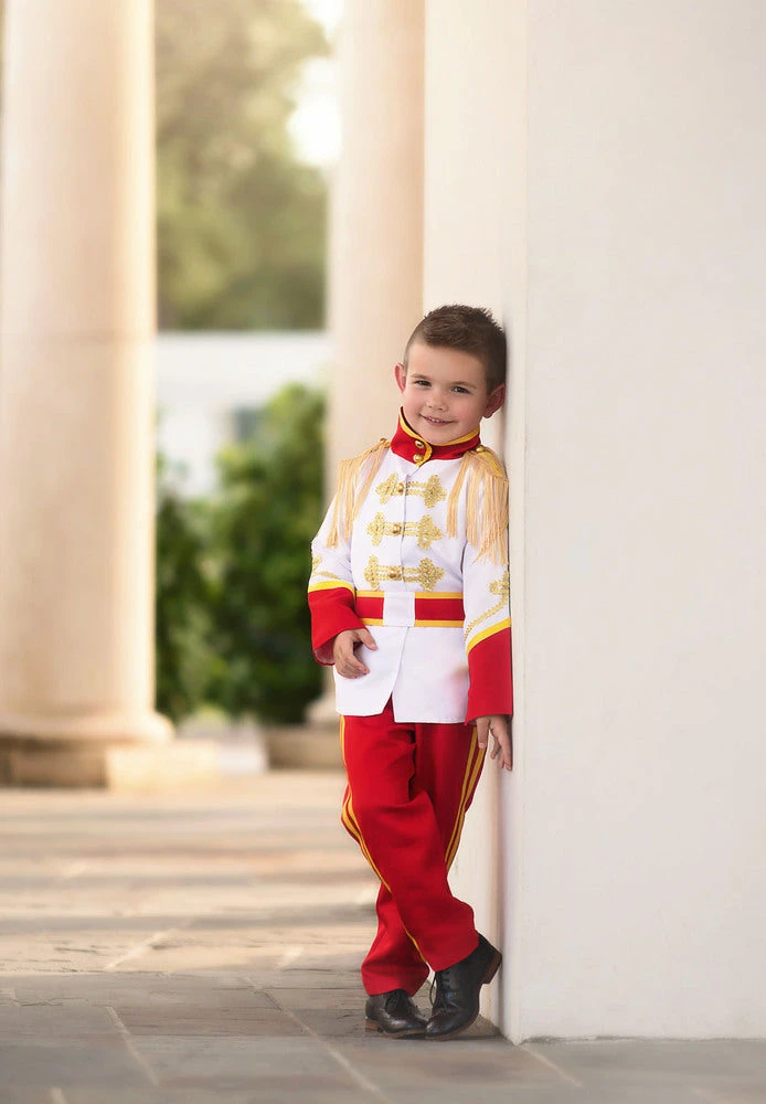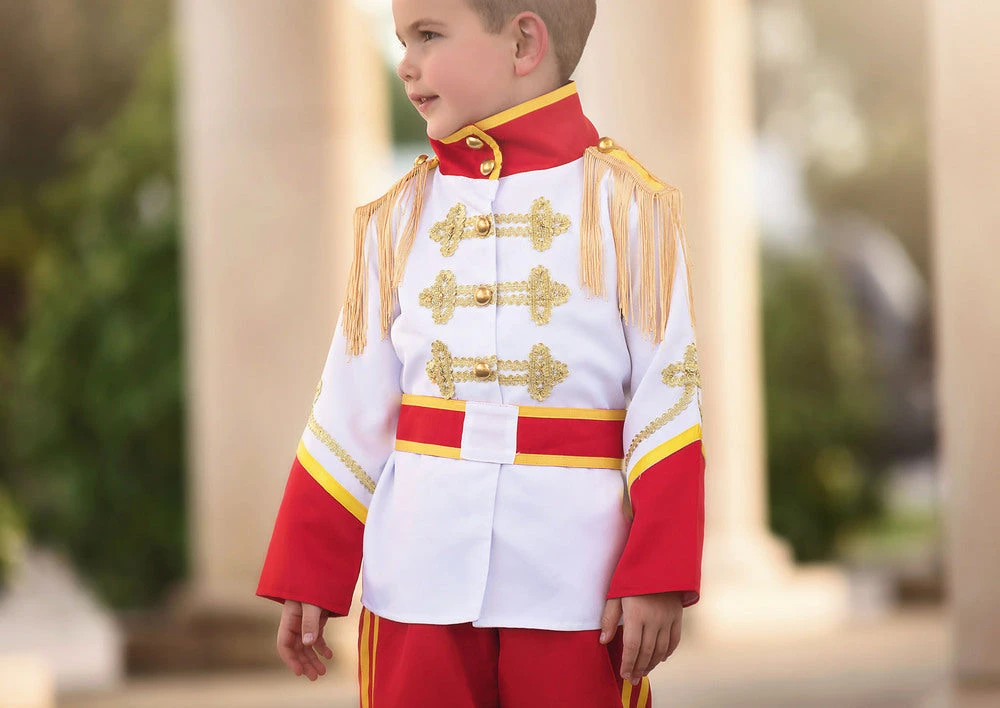 This darling prince costume will have imaginations soar! The regal jacket has all the royal splendor, with gold trimmings, fringe and handsome buttons. The royal pant has side stripes and elastic waist for just the right fit. Belt is completely removable and finishes off the look. 100% poly, machine wash, hang dry.