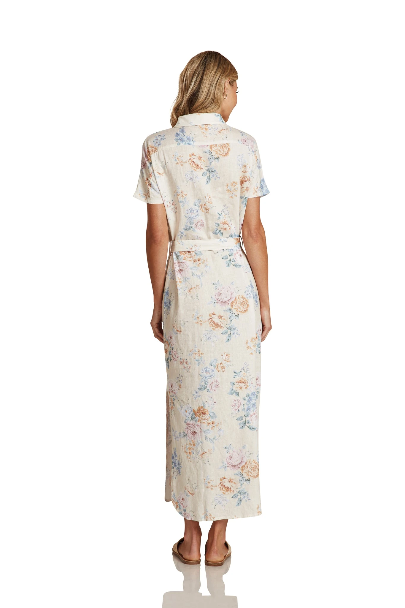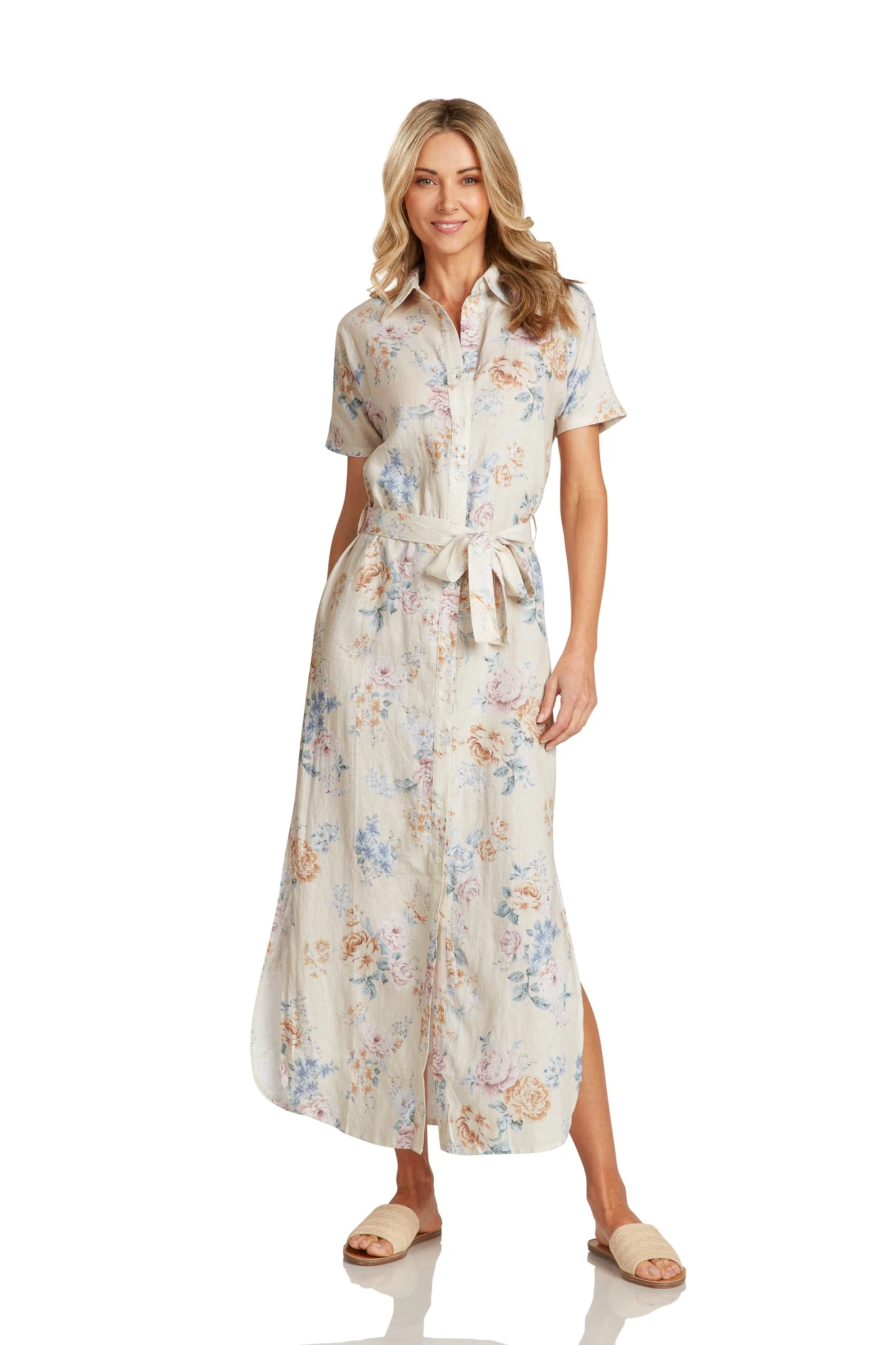 Everything but the resort! This easy wearing floral dress will be your go to favorite for both comfort and versatility. Wear it belted or just loose and flowing, this dress is feminine and carefree. Linen, cotton, poly blend. Machine wash, dry low.