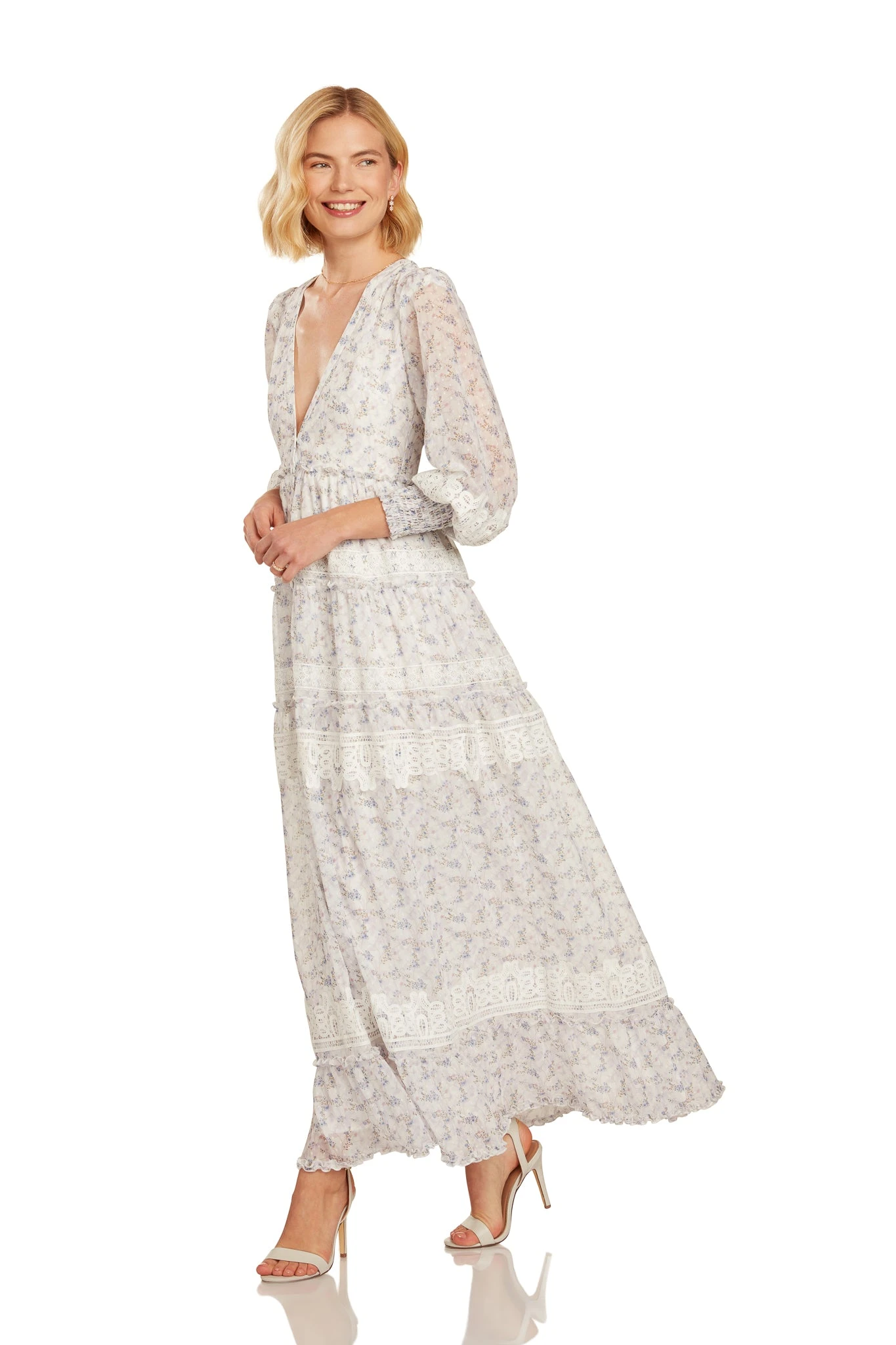A jaw-dropping choice for Spring, this one is stunning from all angles. A delicate floral fabric meets sweet embroidery and trims, subtle ruffles, and finished with a cuffed puff sleeve. A dramatic and feminine deep-v neck completes the look! A perfect choice for beach, dinner, party, photoshoot… you name it. It’s that versatile. Gorgeous coming and going!