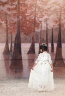 This vintage inspired lace frock is absolutely stunning in person. The color is a dreamy white and photographs amazing. The lace is soft, not scratchy and has a French eyelash edging, creating a perfect touch of vintage whimsy. The dress is fully lined with soft cotton and has a back zipper. The floral braided rope belt is completely removable and self ties in back for just the right touch of sweetness. 100% poly self, 100% soft cotton lining. Machine wash, hang dry.