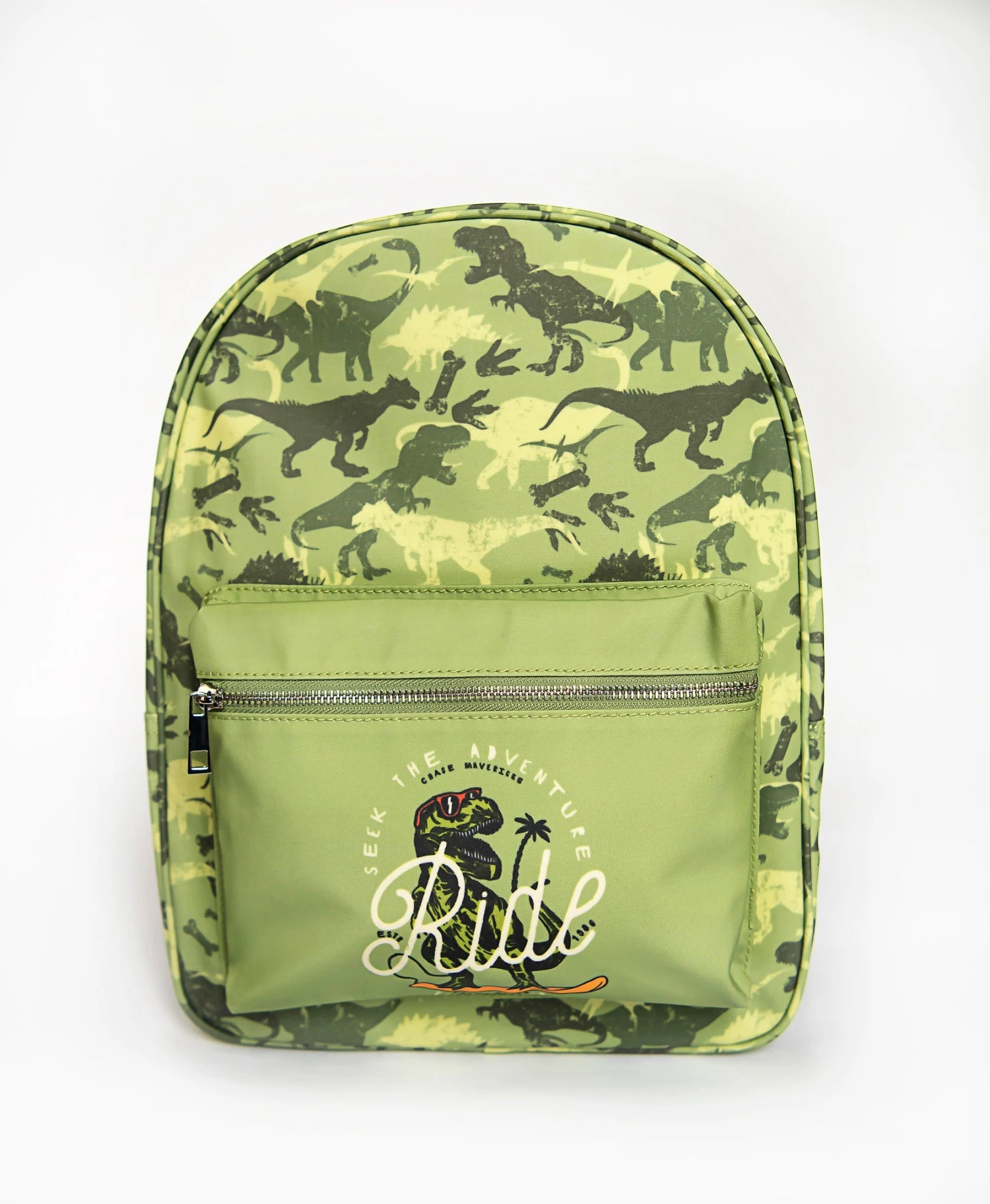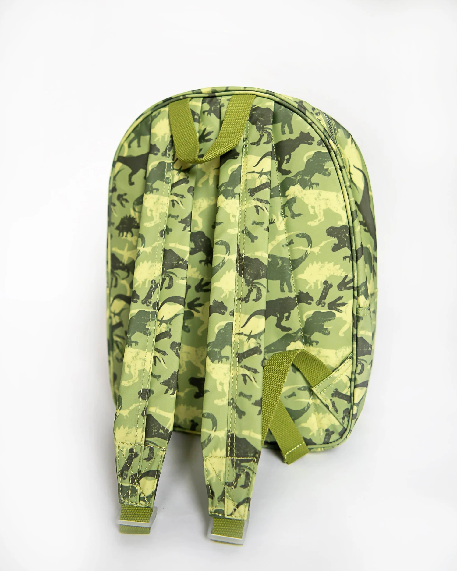 This darling dinosaur print backpack features a front pocket for all of his favorite keepsakes and essentials. Perfect for school, play, sleepovers and more! Includes adjustable straps for the perfect fit.